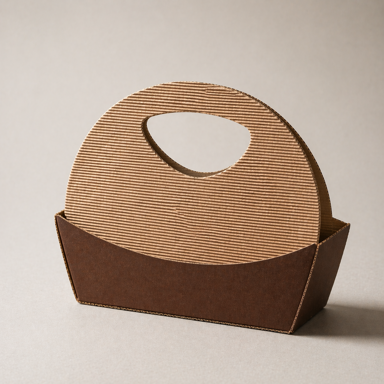 Форма позволяет разместить букет внутри устойчиво, без смещений, а ручка делает переноску комфортной для покупателя.