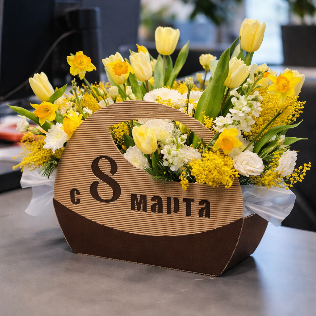 В итоге получилась не просто коробка, а полноценное решение для цветочного магазина в самый сезон 8 марта: