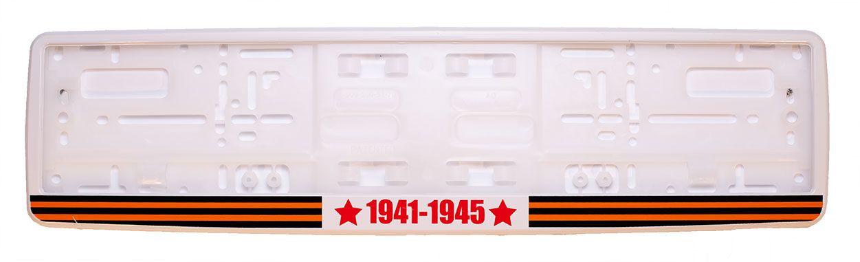 Белая рамка для номера авто «9 мая Георгиевская лента» предназначена для крепления государственного регистрационного знака. Номерная рамка для авто изготовлена из прочного ABS-пластика с основанием из полипропилена. Рамка для номера автомобиля отличается стойкостью к влаге и перепадам температур. Если вы хотите купить рамку для номера в тематике Дня Победы, эта модель подчеркнет уважение к памяти героев. Качественная рамка для гос номера прослужит долго и сохранит насыщенность цветов. В ассортименте есть рамки для авто и рамки для номеров на машину разных дизайнов, а также доступна возможность рамка для номера автомобиля купить онлайн.