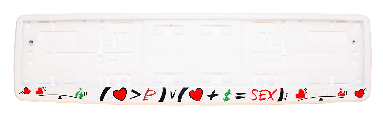 Рамка для номера автомобиля белая «Арифметика любви SEX» — яркий и необычный аксессуар, который подчеркнет индивидуальность вашего автомобиля. Изготовлена из прочного полипропилена и лицевой панели ABS-пластика, устойчива к перепадам температуры, влаге и механическим повреждениям. Такая рамка для номера авто надежно удерживает государственный знак и сохраняет аккуратный внешний вид. Если вы хотите купить рамку для номера с оригинальным и заметным дизайном, модель «Арифметика любви SEX» станет отличным выбором. Рамка для гос номера легко устанавливается, а рамки для авто и рамки для номеров на машину доступны в широком ассортименте.