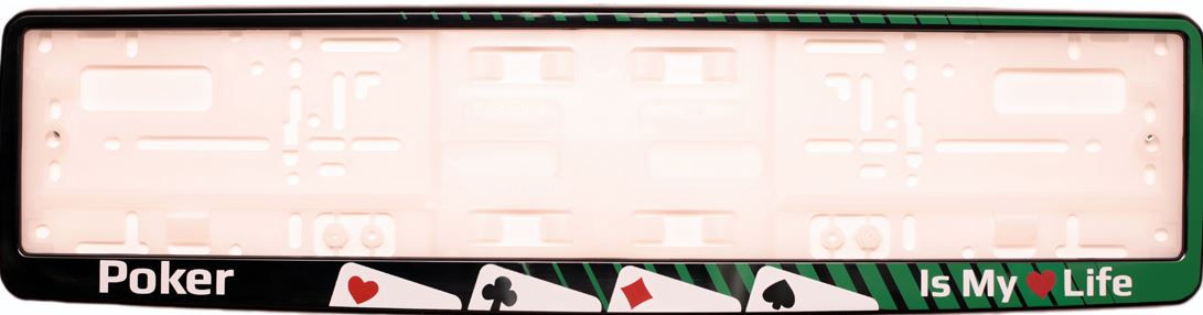 Стильная черная рамка для номера автомобиля "Покер" станет ярким акцентом в оформлении вашего авто. Такие рамки для авто подчеркивают характер владельца и придают машине индивидуальность. Номерная рамка для авто выполнена из прочного пластика, устойчива к влаге, солнцу и перепадам температуры. Если вы решили купить рамку для номера, эта модель с карточной тематикой идеально подойдет. Универсальная рамка для номера авто совместима с большинством отечественных и иностранных автомобилей. Практичная рамка для гос номера надежно фиксирует знак, предотвращая его вибрацию и люфт. В нашем ассортименте представлены и другие рамки для номеров на машину с разными узорами и покрытиями.